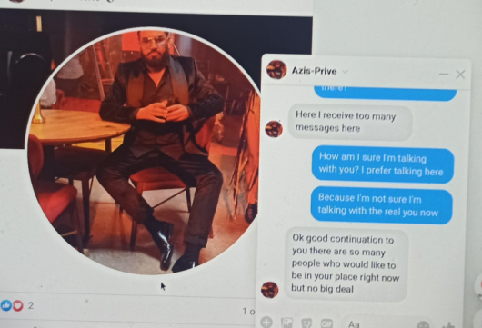 Двамата са си общували в онлайн приложение за гей свалки, наречено Grindr, както и във Фейсбук. Където обаче Азис е изтрил профила, от който е пишел на Патрик. „Как да съм сигурен, че това наистина си ти“, пита съвсем резонно немецът. „О, както искаш, има толкова много други хора, които биха искали да са на твоето място в момента“, отговаря на доста развален английски Азис. Ако, разбира се, наистина той стои зад този профил. И използва социалните мрежи, за да си намира мъже за секс.