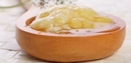 - Вдигнете го от печката и добавете останалите съставки: мед, жълтък и масло.