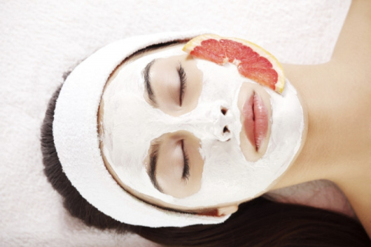 Изстискайте сока от половин грейпфрут. Добавете 2 супени лъжици брашно, 1 супена лъжица кисело мляко и разбъркайте добре. Ако сместа ви се види твърде рядка, може да добавите още брашно. Ако пък се окаже твърде гъста, добавите повече сок. Нанесете сместа върху лицето си и изчакайте 10-15 минути. Изплакнете с хладка вода. Процедурата се повтаря един път седмично.