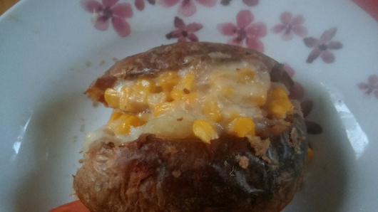 При слагането на рибата, тя трябва леко да се набута в картофа. След това се прибавя царевицата.