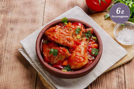 Бутчетата подреждаме в тавичка или глинен съд, върху тях сипваме доматите, покриваме Чахохбили с фолио и печем за 40 минути на 200°C.