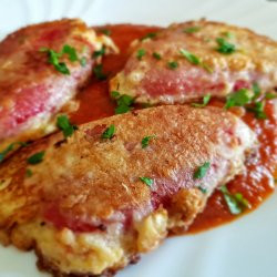 Поднесете топли върху доматения сос и поръсени с пресен, накълцан магданоз.