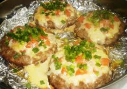Разпределете плънката по гнездата и я намажете с разбитото яйце. Поставете тавата в предварително загрята на 180 градуса фурна и печете за 15-20 минути. Нарежете на ситно перата от лук и поръсете върху плънката върху приготвените гнезда от кайма.