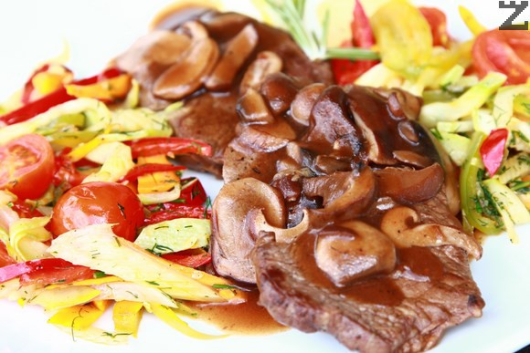 Изискано и много вкусно! Телешко с гъби и сотирани зеленчуци
