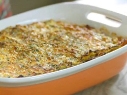 5 Отгоре се поръсва с малко пармезан. Пече се около 30 минути на 180 С. 6 Поръсете с мащерка при сервирането.