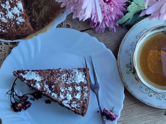 Готовата италианска торта Капрезе поръсете с пудра захар.