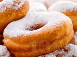 Щом топлите сладки понички леко се охладят и отцедят от мазнината, се поръсват с пудра захар (4 с.л.)./1001recepti.bg