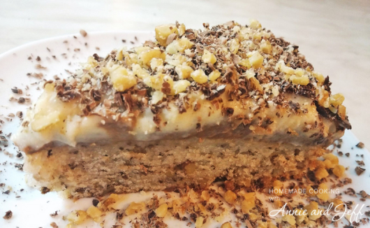 Сменете миксера с шпатула и добавете орехите. Разбъркайте добре.