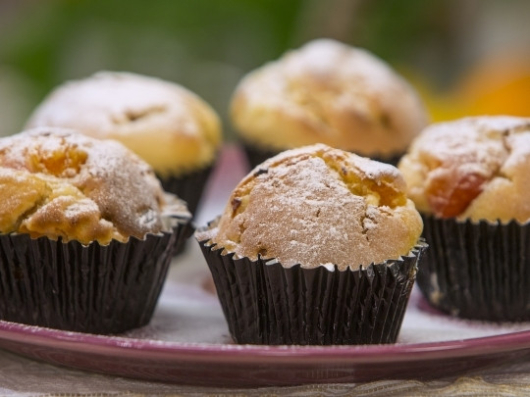 Сместа се разпределя в хартиени формички, поставени в отворите на форма за мъфини.
