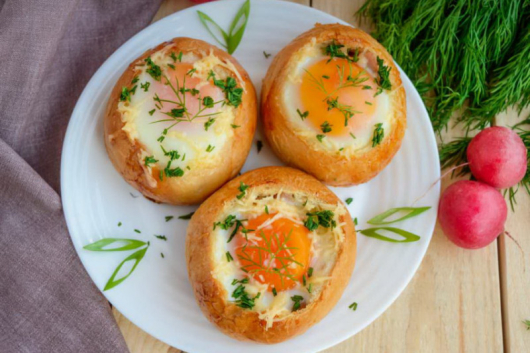 4. Приготвени по този начин, поставете кифличките в предварително загрята фурна и печете 10-15 минути, докато яйцето стане златисто жълто.