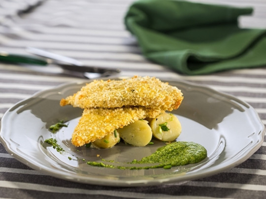 Пилешки шницели с магданозено песто