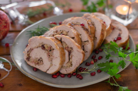 Вземайте пържола и по средата нареждайте по дължина краставички, кашкавал, сварени яйца и гъбки с бекон. Завийте на роле и стегнете с дебел конец.