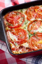 • Подправят се с чубрица, магданоз и вегета и се заливат с останалата мазнина и с разбитите мляко и яйца.