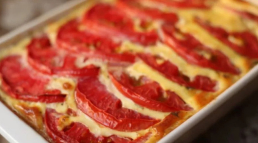 Нарежете доматите на полукръгчета или т.н. филийки.