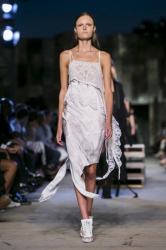 7227 прочитаНапомняне за будоарен стил, женственост и свобода. Такава е пролетно-лятната колекция на модна къща Givenchy за тази година. Има ясно съчетаване на традиционни мъжки линии с женствеността. Фина дантела и коприна покриващи телата на моделите, а от другата страна, елеци, широки мъжки панталони и смокинги обгърнати в разкоша на кадифето.