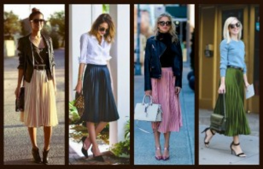 Този сезон идват миди плисираните поли - тези до средата на прасеца.