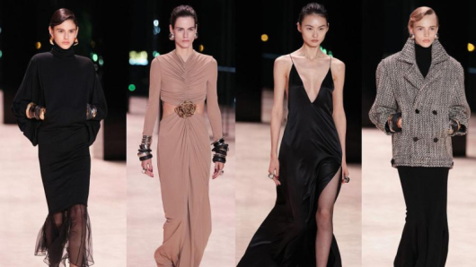Художественият директор на модна къща "Сен Лоран" Антъни Вакарело смени естетиката си за сексапилен блясък с поетично дефиле в подножието на Айфеловата кула