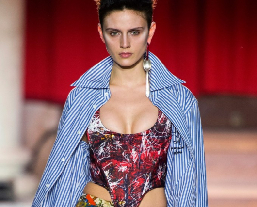 Британската модна дизайнерка за първи път включи корсета в пънк естетиката си през 70-те години, като го превърна в синоним на женска сила и изкорени старата му слава. Сега тя го връща в три нюанса - слонова кост, червено и черно, които можете да закупите в бутиците на Vivienne Westwood в Лондон, Ню Йорк, Париж, Милано и Лос Анджелис.