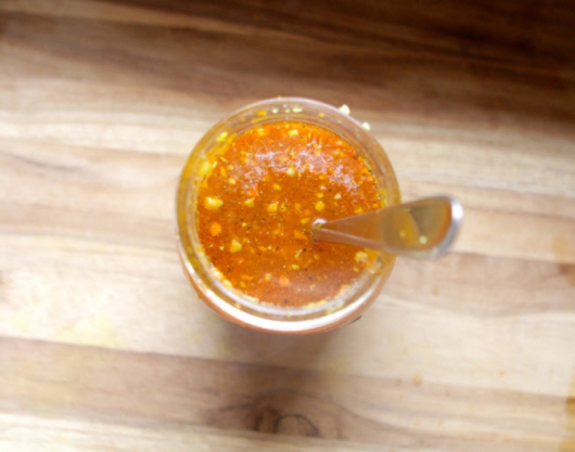 Сварете водата и захарта заедно. Добавете нарязания лук и настъргания джинджифилов корен. Добавете куркумата, след като сместа заври, намалете огъня и оставете да поври още малко.