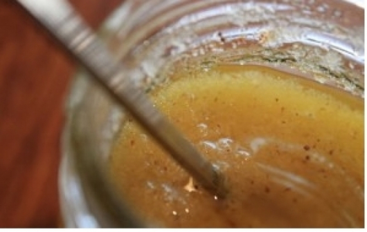 Накрая махнете от огъня и докато сместа е още топла, прехвърлете я в малък и подходящ съд. След като се охлади ще се сгъсти.