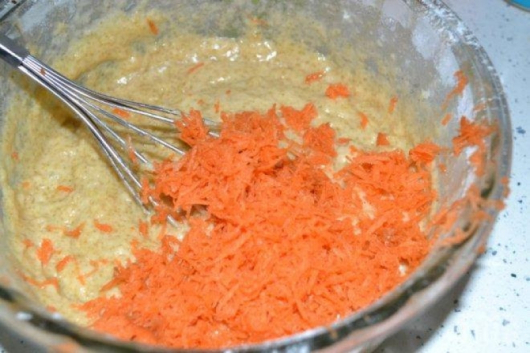 Рецептата се състои от два моркова и ябълка. На едрата страна на рендето настържете ябълката, на дребната страна на рендето настържете морковите.