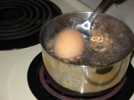 Дръжте яйцето на челото, докато не изстине, а след това го изхвърлете.