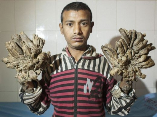 Мъж от Бангладеш се превръща в дърво. Лезии-кондиломи растат от краката и ръцете на човека. Той е приет за лечение в болница. 25-годишният Абул Баджандар от Кулна страда вече седем години насам от болестта Epidermodysplasia Verruciformis – рядко наследствено заболяване по кожата. Лекарите в Медицинския колеж в Дака сега предстои да решат как да лекуват Абул. За целта ще бъде сформирана специална експертна комисия.