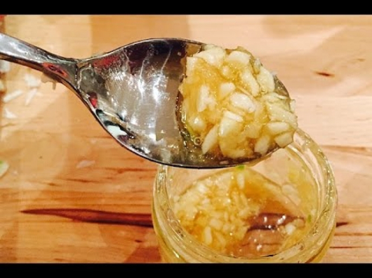 На първо място, накълцайте 2-3 скилидки чесън на малки парченца и след това ги смесете с една супена лъжица мед. Задължително приемайте на гладно!